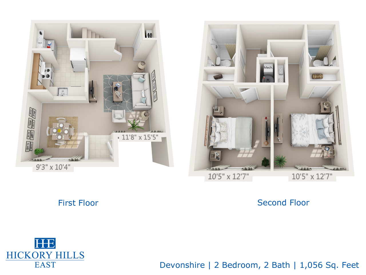 2 bedroom, 2 bath with basement