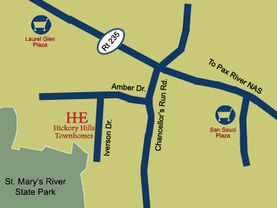 Traveling south on Rt. 235, turn right at Chancellor's Run Rd. Turn right on Amber Dr., then left onto Iverson Dr. The rental office will be on your right. |