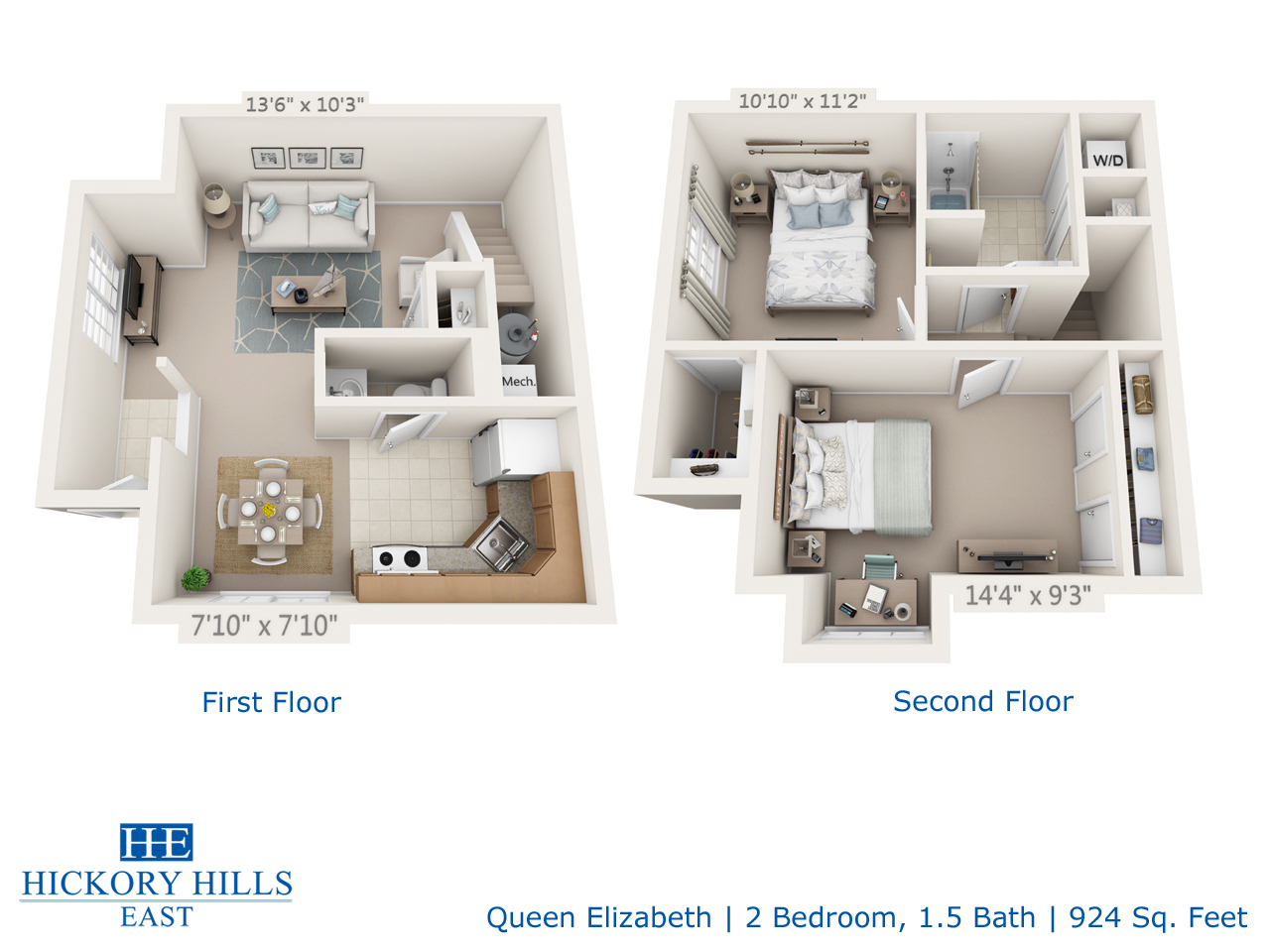 2 bedroom, 1 1/2 bath